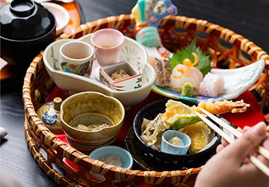 炊き立ての釜めしを含む〝彩月御膳〟など